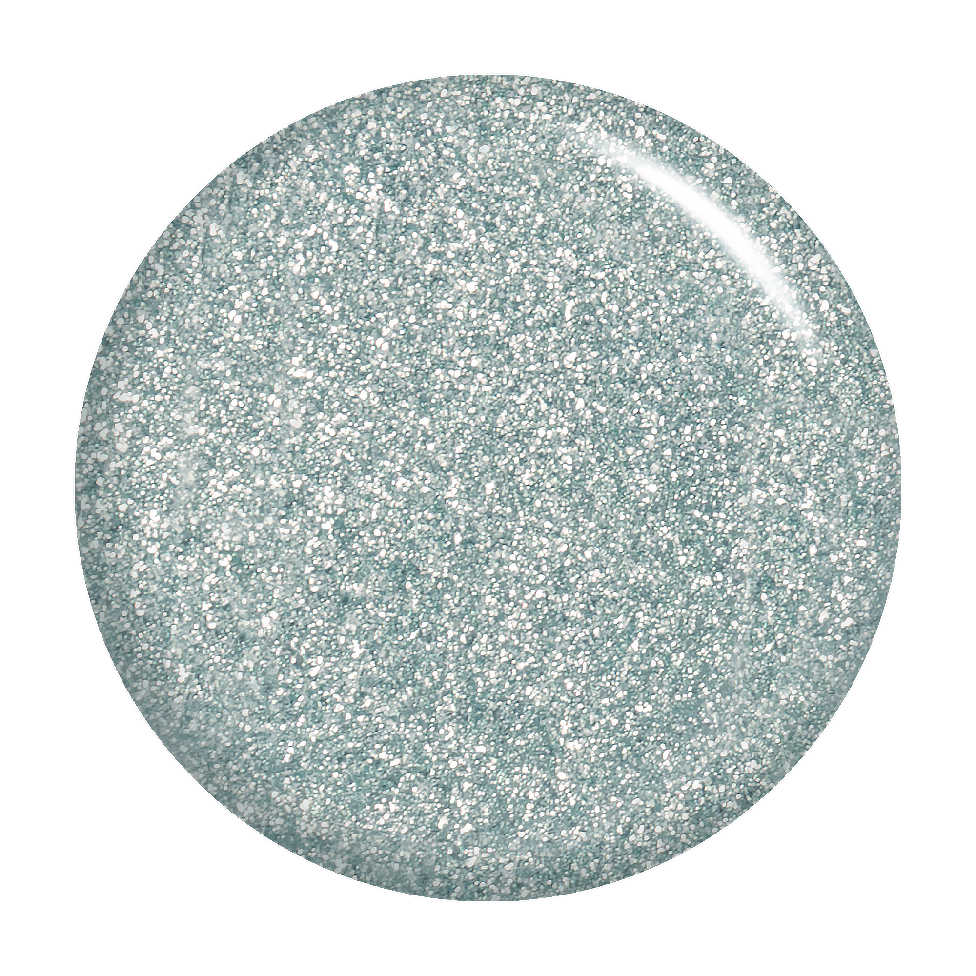 Silver with pale blue tint. Metallic foil sparkle. Opaque. Cool undertone.
